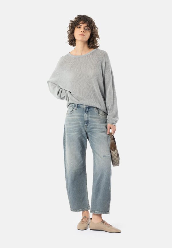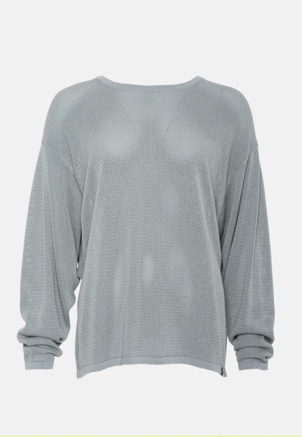 - Löchrige Strickoptik mit Jaquard-Logo-Schriftzug im Rückteil